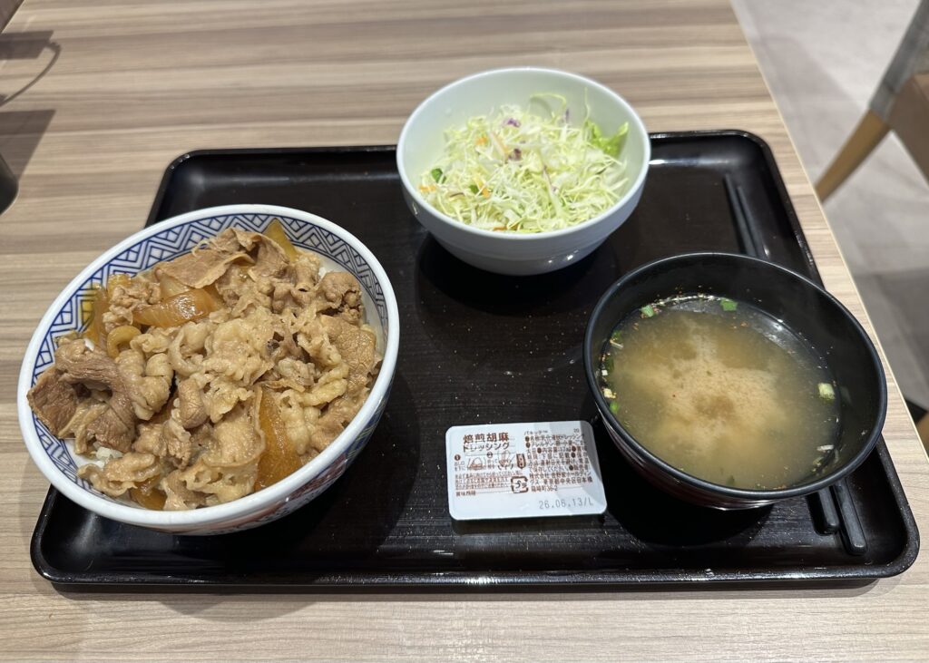 牛丼+サラダセットでのオーダーです